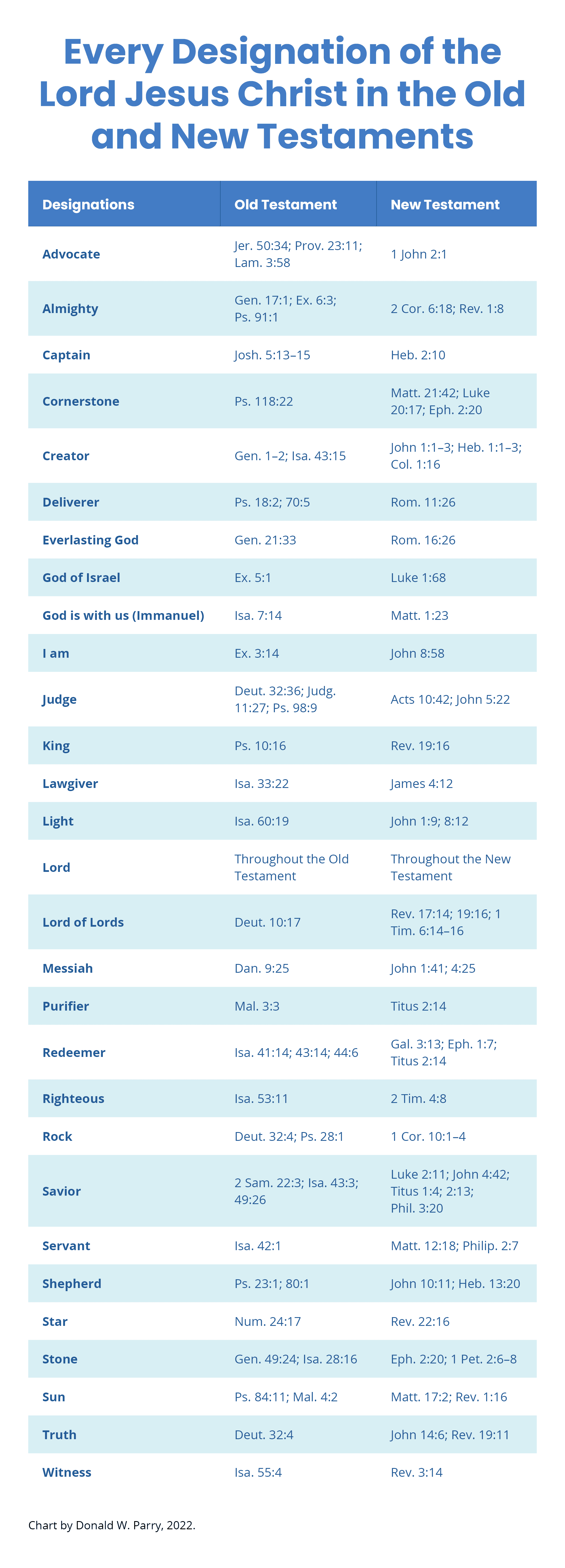 Proper understanding of these designations demonstrates that Jesus Christ is the God of the Old Testament; furthermore, knowledge of equivalent designations adds great understanding of the Lord Jesus Christ and His divine and formidable work with individuals, peoples, and nations in both the Old and New Testaments. Beyond the examples in the chart, many others could also be set forth.