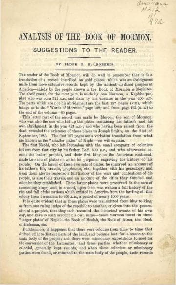 Analysis of the Book Of Mormon: Suggestions To The Reader.