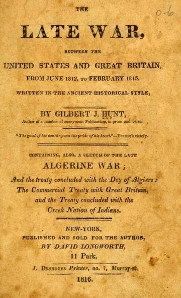 The work here presented to the public, is a faithful statement of the principal facts which took place during the Late War between the United States and Great Britain. It was written not only for the author's amusement, but to condense, in as concise a manner as his talents would allow him, those prominent circumstances which ought to live forever in the American memory.