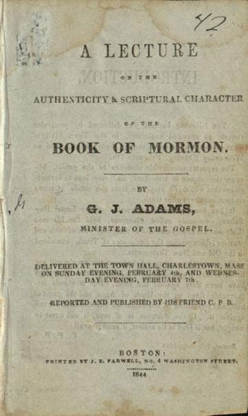 A Lecture on the Authenticity and Scriptural Character of the Book of Mormon