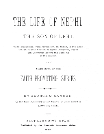 This book, written by Mormon apostle George Q. Cannon, covers the life of one of the larger figures within Mormon scripture, the prophet Nephi. Utilizing both the Book of Mormon and sources contemporary to his time, Elder Cannon presents a picture of Nephi and what his life, surroundings, and circumstances could have been.Subject Keywords