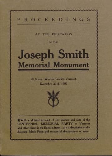 Proceedings at the Dedication of the Joseph Smith Memorial Monument at Sharon, Windsor County, Vermont, December 23rd, 1905