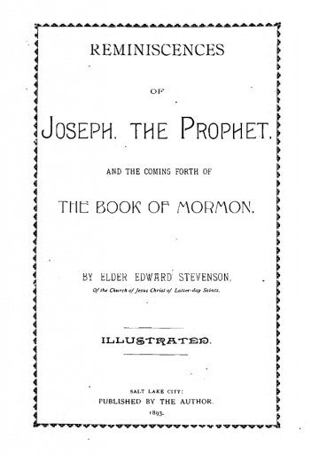 In presenting this pamphlet of Reminiscences to the public, the Author desires to explain the circumstances that induced him to issue it. While delivering a series of illustrated lectures in the various tabernacles and public halls throughout the Territory— and which were repeated on more than 200 different occasions— the Author was earnestly solicited to publish the lectures, including engravings of the paintings, in the form in which they now appear. Having become convinced from the great interest taken in the lectures, that they were productive of much good, the Author finally determined to submit the lectures to the public. The Author having been personally acquainted with the Prophet Joseph Smith, and having been with him in many of his trying experiences, desires to add his testimony to the truth of the work inaugurated by him, under instructions from the Almighty, and hopes that the incidents herein related will induce many to investigate this great and important work; for he that judgeth without investigation is unwise.Subject Keywords
