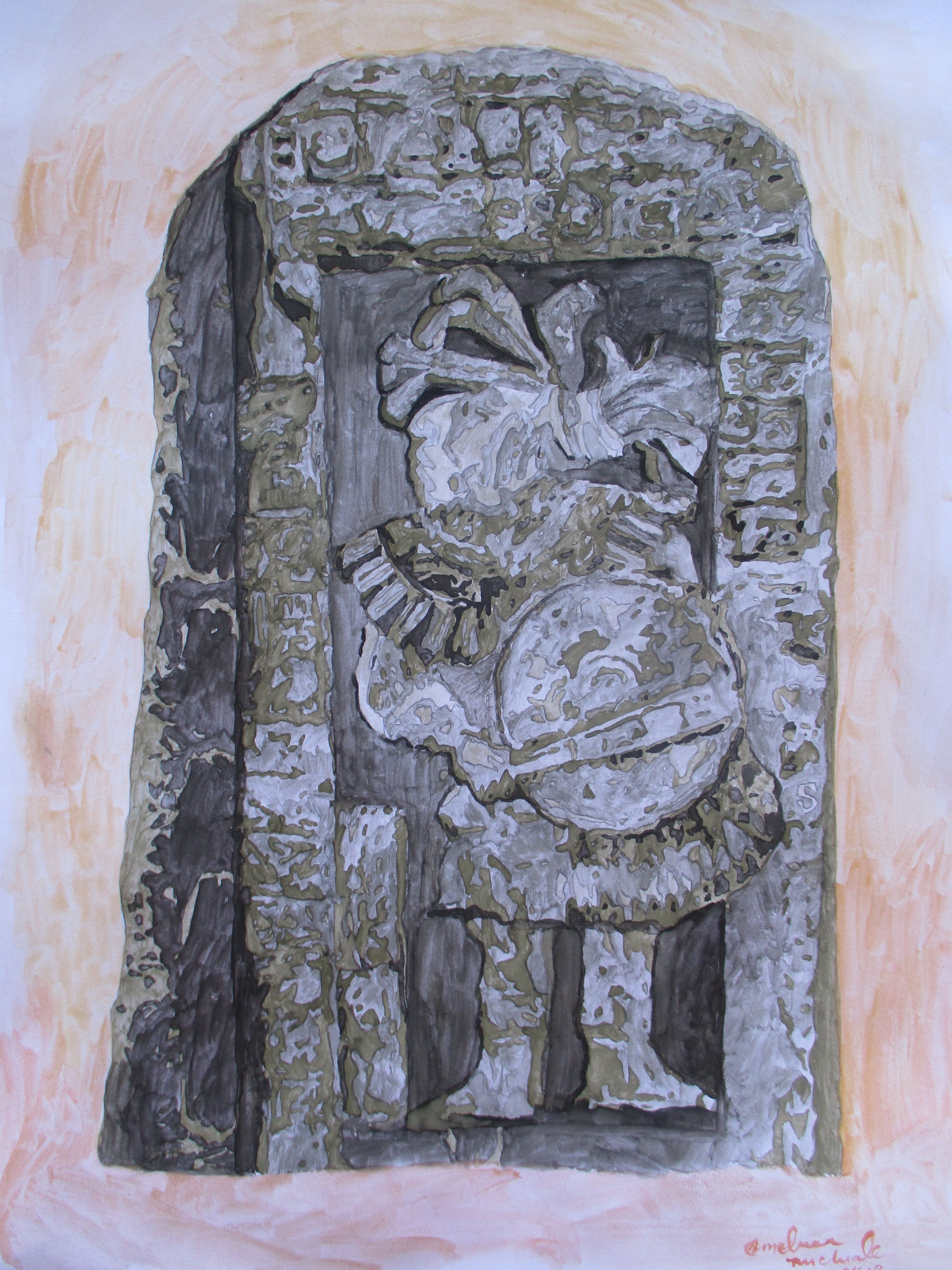 Amateur watercolor of the large Jaredite stone referenced in Omni 1:20. Based on Mesoamerican Stelae; an engraving of The great warrior Coriantumr, with his genealogy and tales of victory in characters around him. The Jaredite people and history have always fascinated me and I look forward to the day when we have their full story.