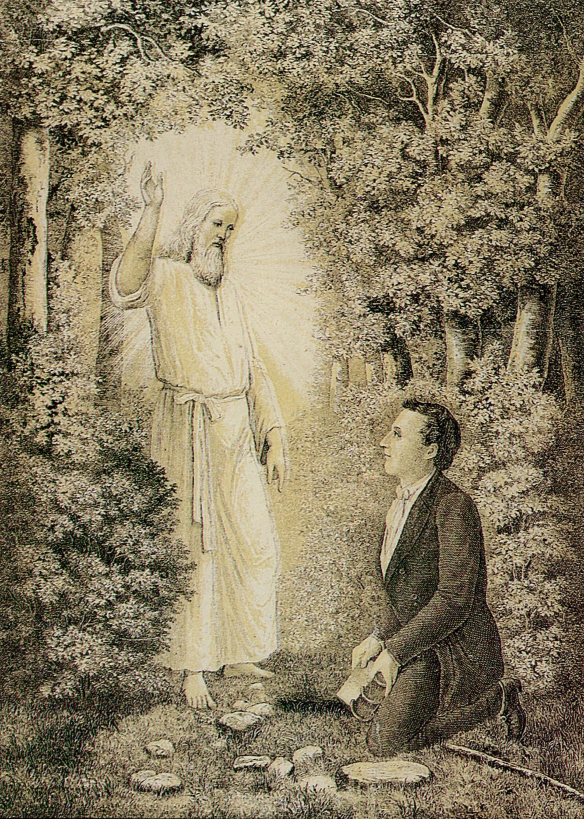 The Angel MORONI delivering the plates of the BOOK OF MORMON to JOSEPH SMITH jun.