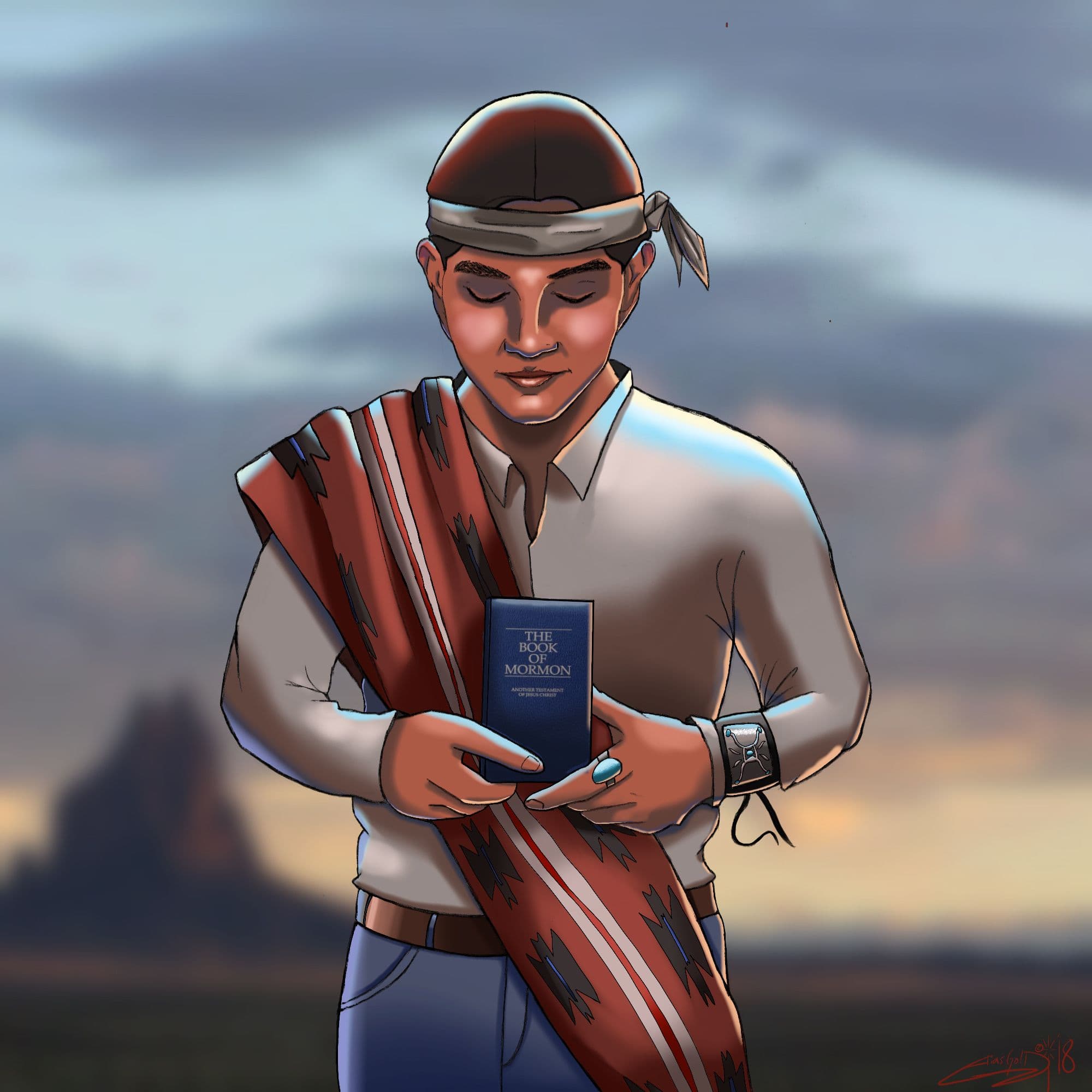 The Title comes from Helaman 15:13, and speaks of the fate of the Lamanites at that time, and how at some later date, they will receive the fullness of the gospel. As a descendant of the Remnant of the House of Israel, I feel it is speaking comfort to me as a Child of Lehi. Knowing the trials that my ancestors suffered through and then reading that it was prophesied, these special blessings bring comfort to my soul, which is why I have a firm and strong testimony of the Book of Mormon. Moroni's promise is specifically to me and my people, which really holds some great meaning to me personally. The image is of a Navajo man, the tribe from which I come, in his near traditional clothing holding closely the Book of Mormon. If one looks closely, his mantle and bandana are placed in a certain way that would only be noticeable to endowed saints. Another "remnant" of the truth. Simple, but it brings home the point, that this man is happy with the knowledge he has gained. In Navajo culture, knowledge is treasure, and he has found a mighty treasure indeed.