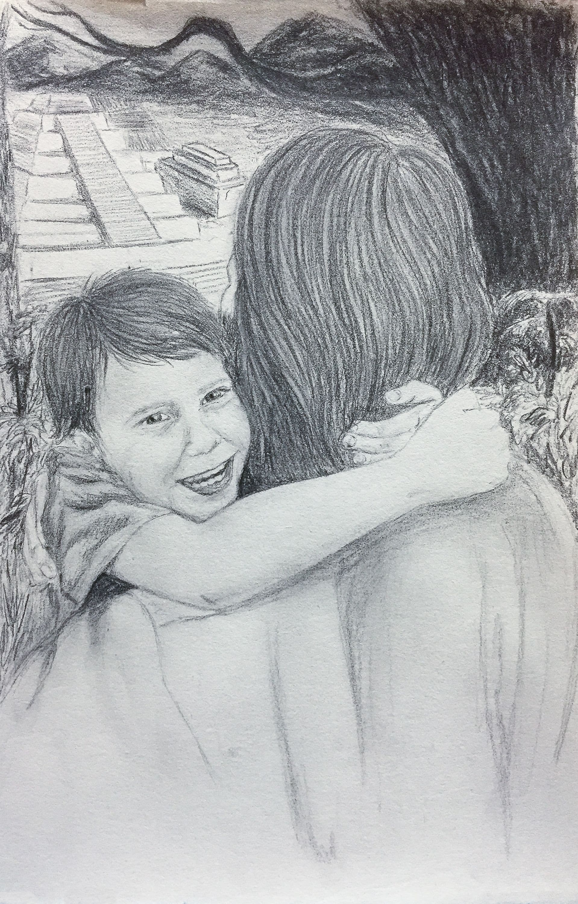 Honorable Mention - Youth Division in the 2017 Book of Mormon Central Art Contest I wanted to show the love and happiness that Christ shared with those around him. This image depicts a happy little boy with his arms wrapped around the Savior.