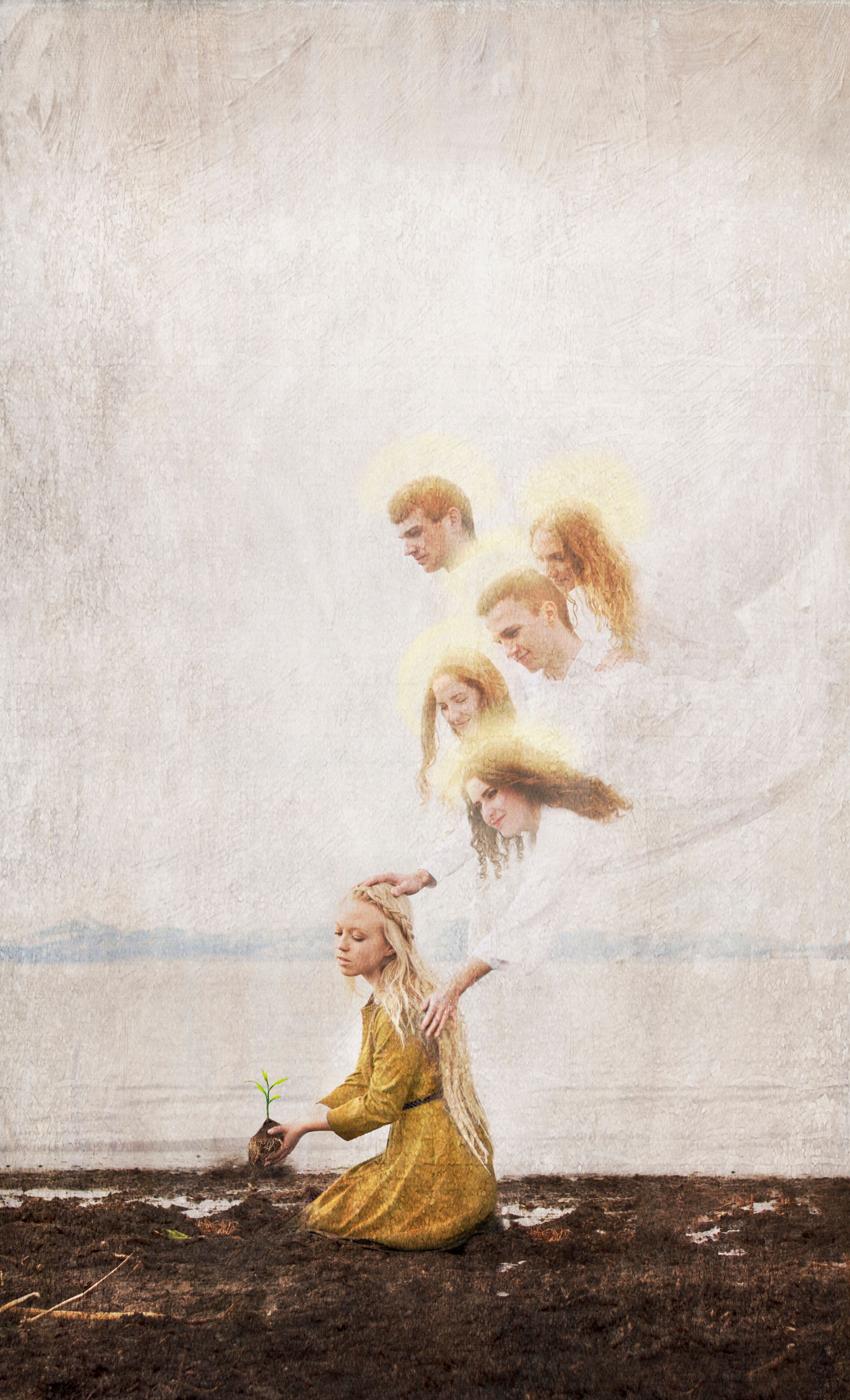 Honorable Mention in the 2017 Book of Mormon Central Art Contest This particular submission is entitled, "Do You Not See Them?" and stands as my personal witness and testimony of the reality of angels in our life. It corresponds to Moroni 7:27-33, which states: "Wherefore, my beloved brethren, have miracles ceased because Christ hath ascended into heaven? Behold I say unto you, Nay; neither have angels ceased to minister unto the children of men. And by so doing, the Lord God prepareth the way that the residue of men may have faith in Christ, that the Holy Ghost may have place in their hearts, according to the power thereof; and after this manner bringeth to pass the Father, the covenants which he hath made unto the children of men. And Christ hath said: If ye will have faith in me ye shall have power to do whatsoever thing is expedient in me." The title itself is inspired by a quote from the 2011 film, "Jane Eyre." Jane is the protagonist who experienced a harsh and lonely childhood. When sent to a new school, she befriends one Helen Burns who acts as a personal angel to her in her darkest moments at that point of her life. When Jane expresses her desire for love and friendship and claims she'd do anything for it, Helen responds by saying: "You are loved. There’s an invisible world all around you - a kingdom of spirits commissioned to guard you, Jane. Do you not see them?" God is our loving Heavenly Father, He will never leave us in darkness without sending us His light and love. He will never leave us on our own. He always tries to speak to us. He always tries to reach us. He does so through His angels: people here and beyond the veil. God be thanked for the angels of my life.