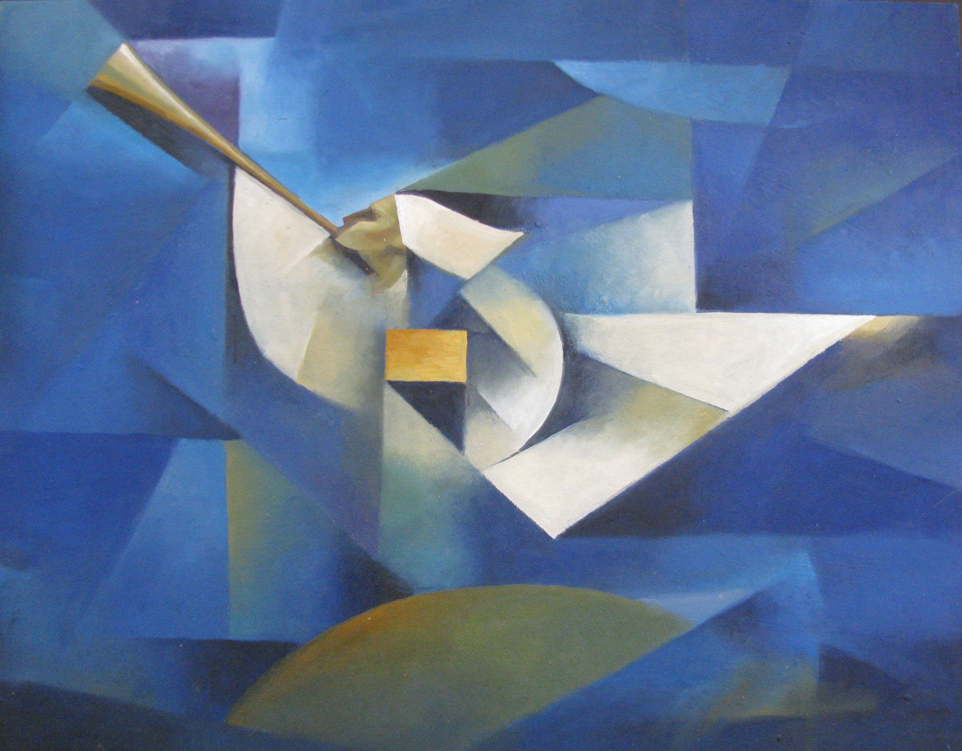 2nd Place in the 2017 Book of Mormon Central Art Contest Jorge Cocco is both a participant and an educator in the fine arts, having been an art professor at the Universidad de las Américas Puebla in Mexico. The title of this piece comes from Revelation 14:6–7, and depicts the Angel Moroni sounding a horn and bearing the gold plates. Moroni is a pivotal person in the creation, safekeeping, delivery, and translation of the Book of Mormon, and thus became a key element in the development of the Restored Gospel. Jorge Cocco has coined the term sacrocubism to describe many of his paintings that merge the familiarity and sacred nature of religious topics, with the aesthetic of the post-cubist school. While the artist makes the subject explicit, his aesthetic style subconsciously conveys that there are more details yet to be unveiled.