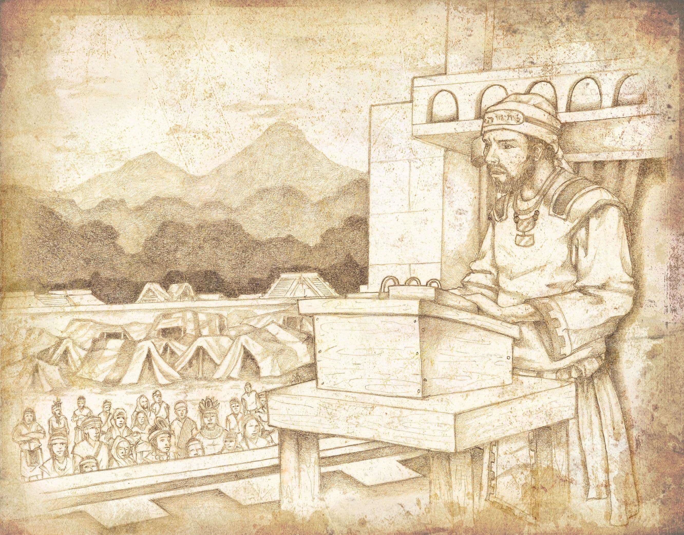 Jacob and his people at the temple courtyard celebrating the feast of tabernacle/autumn festival.