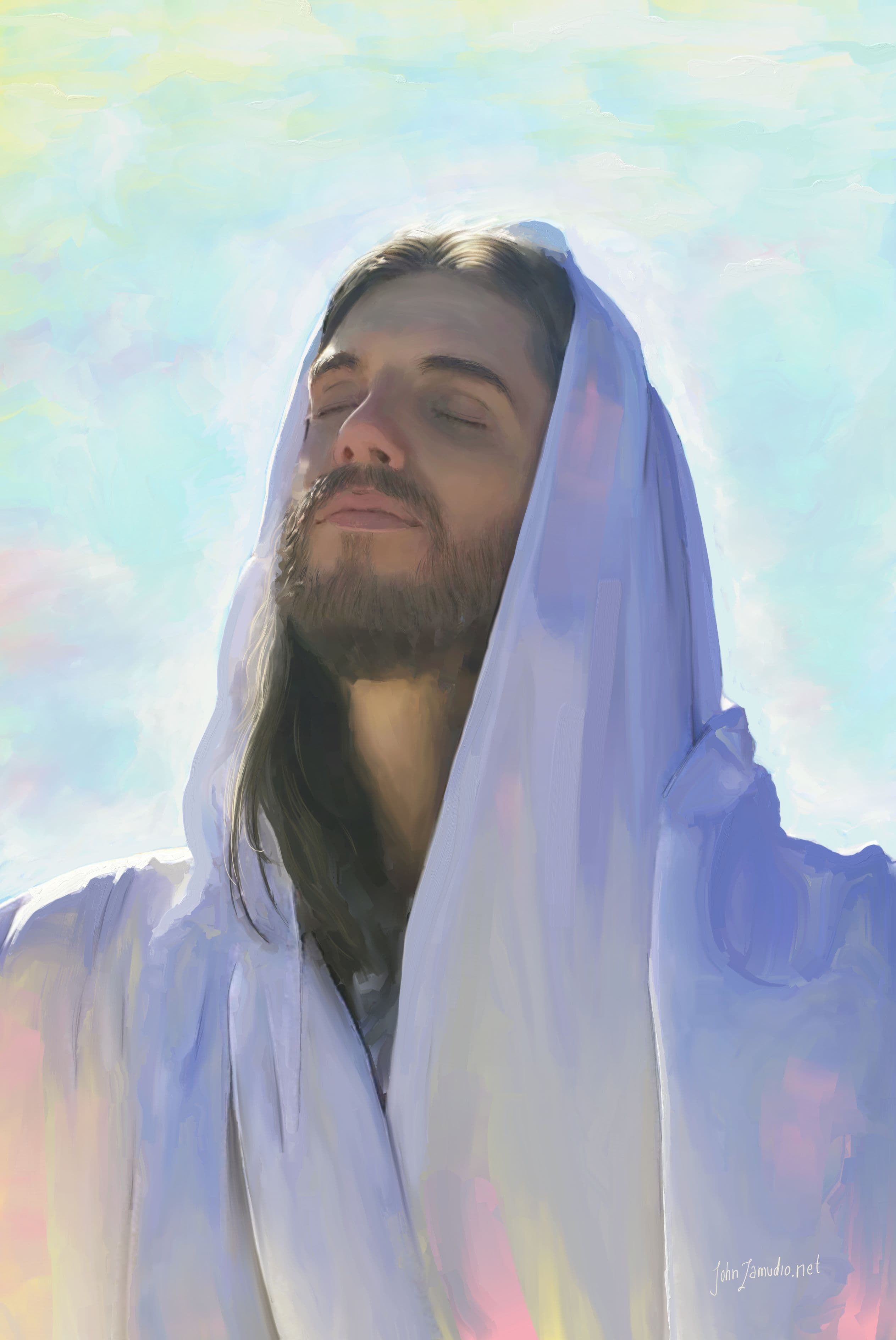 Jesus Christ praying, a secret prayer, we can see in his face a deep happiness because he knows everything will be fine!