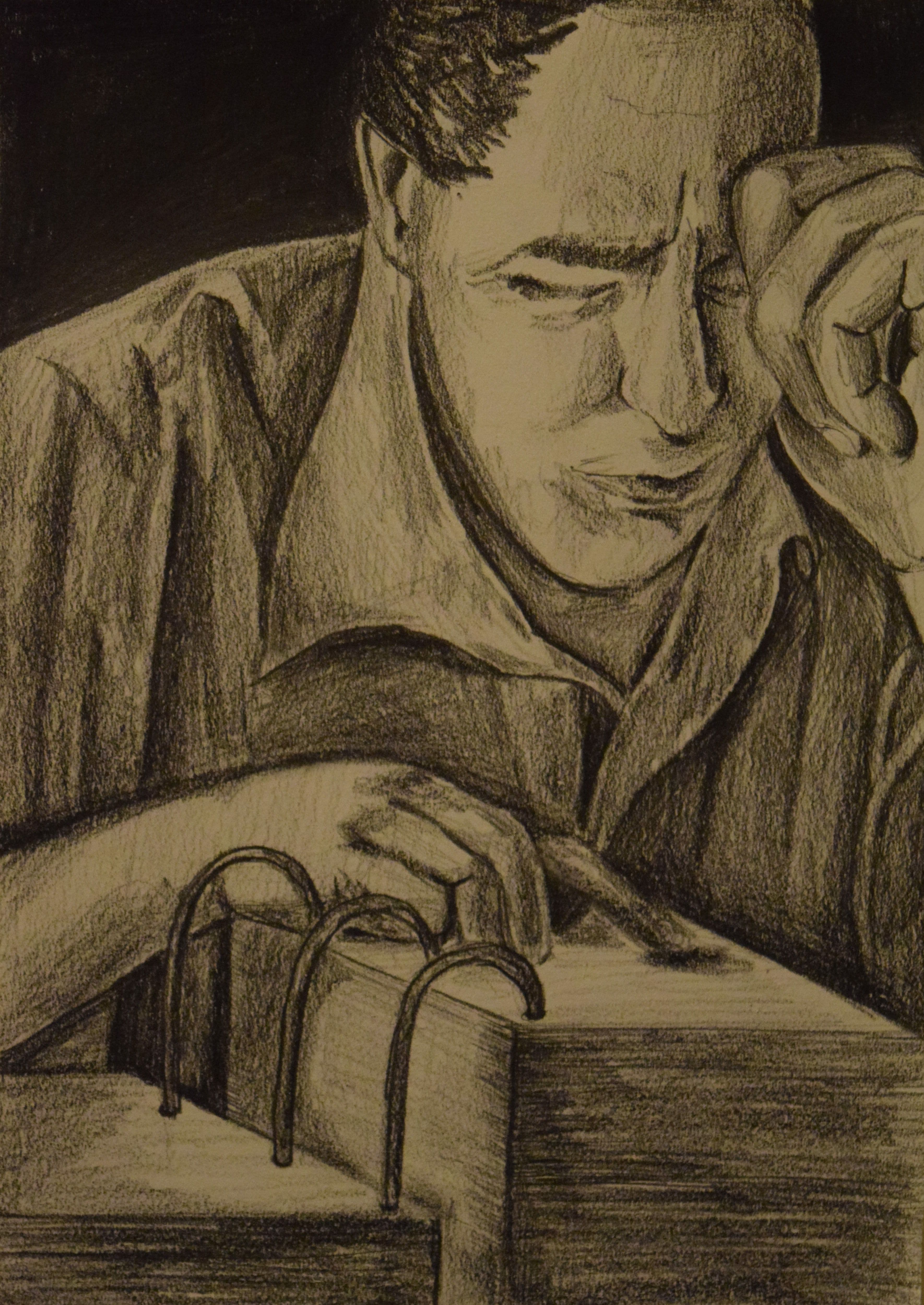 I decided to depict Joseph Smith translating the Book of Mormon. In the drawing, Joseph Smith, an American religious leader and founder of Mormonism and the Latter Day Saint movement, is reading the Book of Mormon and trying to translate. When he was twenty-four, Smith published the Book of Mormon.