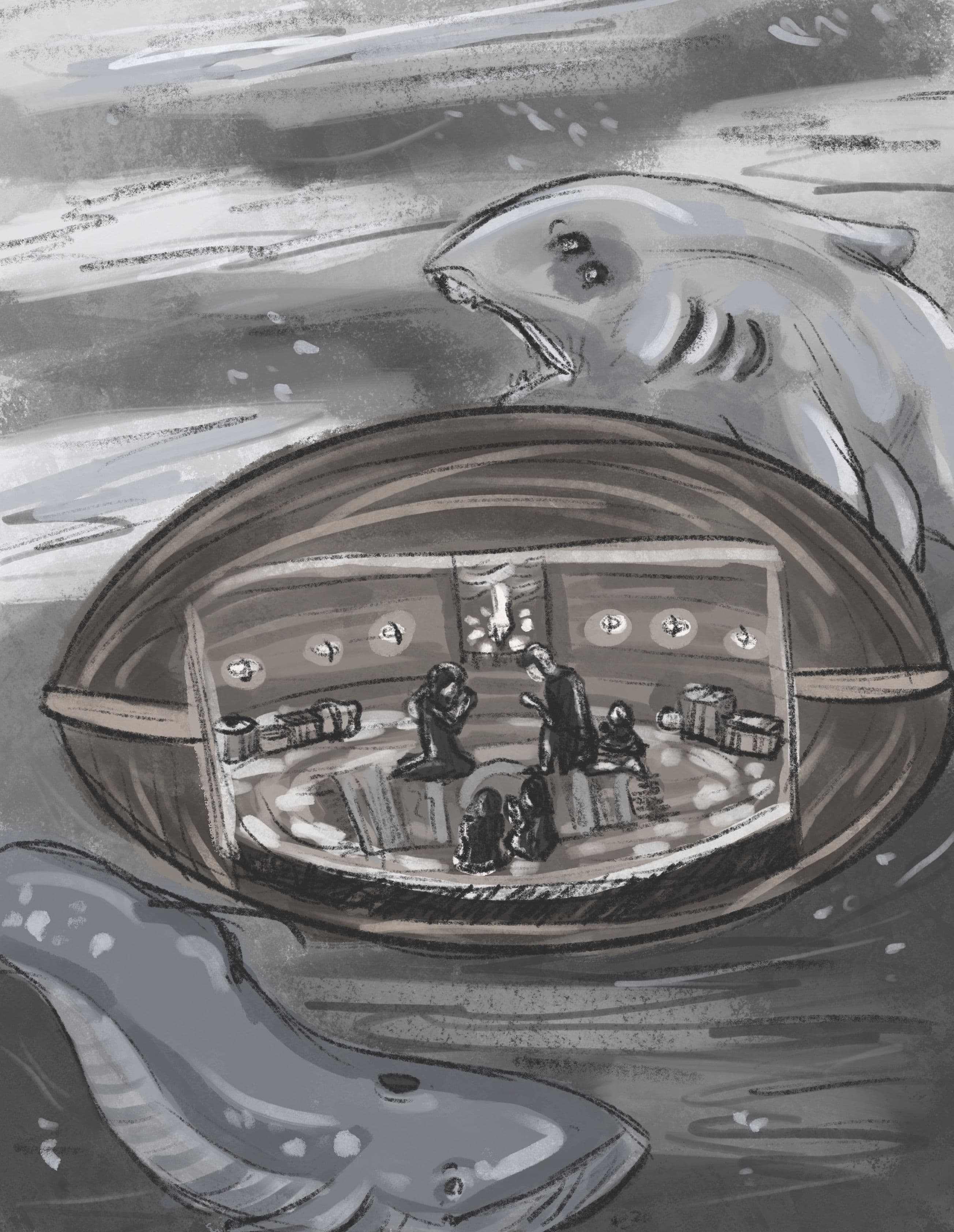 This digital painting depicts Ether 6:6-11 and the idea of the fear the Jaredites had to face. There is so much going on in the world that can seem frightening, but the Lord provides a way. The Lord showed the brother of Jared how he could travel to the promised land and also lit the 16 stones to light the way. The art was created on an iPad pro with Procreate.