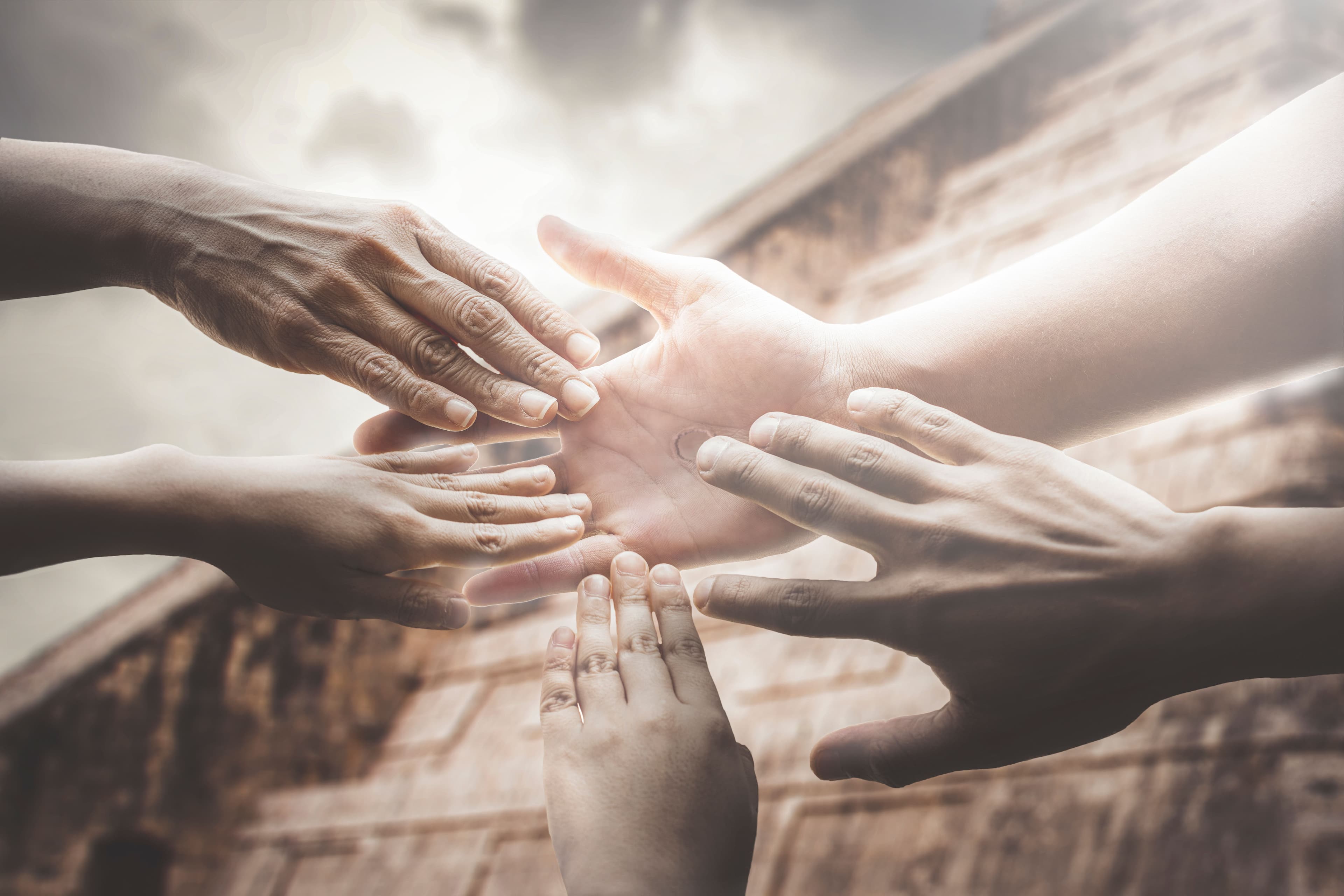 This digital work represents the moment when the savior appears to the people of Nephi, as described in 3 Nephi chapter 11.