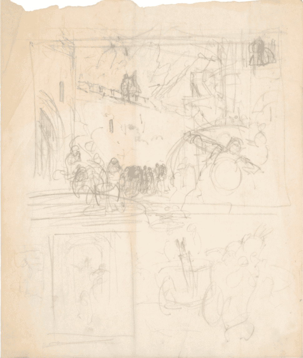 Despite being première pensée for the painting Samuel the Lamanite Prophesies from the City Walls, it is remarkably complete, showing that from his first attempt, Friberg had a clear idea of what he wanted in his final painting.