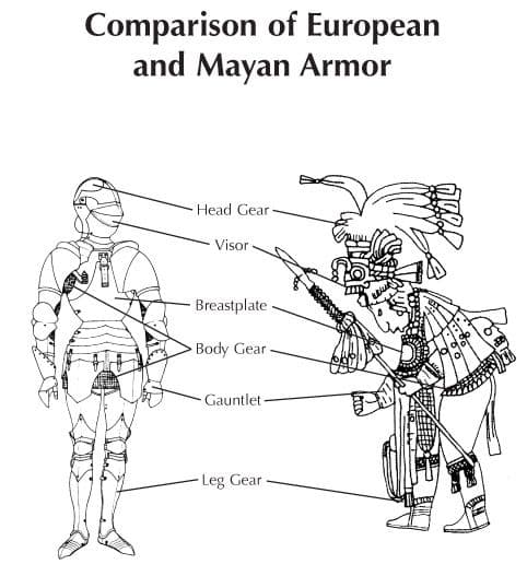 European and Mayan warriors used similarly named pieces of armor, such as head gear, breastplates, body gear, and gauntlets, but the styles and materials they used were very different. The Book of Mormon mentions breastplates, shields, armor, headplates, arm-shields, animal skins, thick clothing, and bucklers as types of armor. What were they like? Mayan soldiers used thick protective jackets made of double-thick quilted cotton that were often worn under animal skins. Nephite breastplates were probably also similar to Mayan breastplates, which were made of materials such as wood, bone, shells, jade, stones, and pieces of metal. The term head-plates in the Book of Mormon is unusual, but Mayan records may again help to clarify: Mayan head-plates, or carved jade plaques, were worn attached to leather or cloth headbands. Hats that were protected with plates of stone, wood, or metal could also be considered head-plates. Mayan shields were usually made of reeds, cloth, or wood. Armor terminology in the Book of Mormon interestingly reflects differences between Old World and New World armor. The Book of Mormon uses biblical terms when ancient Near Eastern and Mesoamerican armors are similar but different terminology when Mesoamerican armor (e.g.,headplate) differs significantly from Old World armor (e.g., helmet), thus indicating the precision of the Book of Mormon accounts.