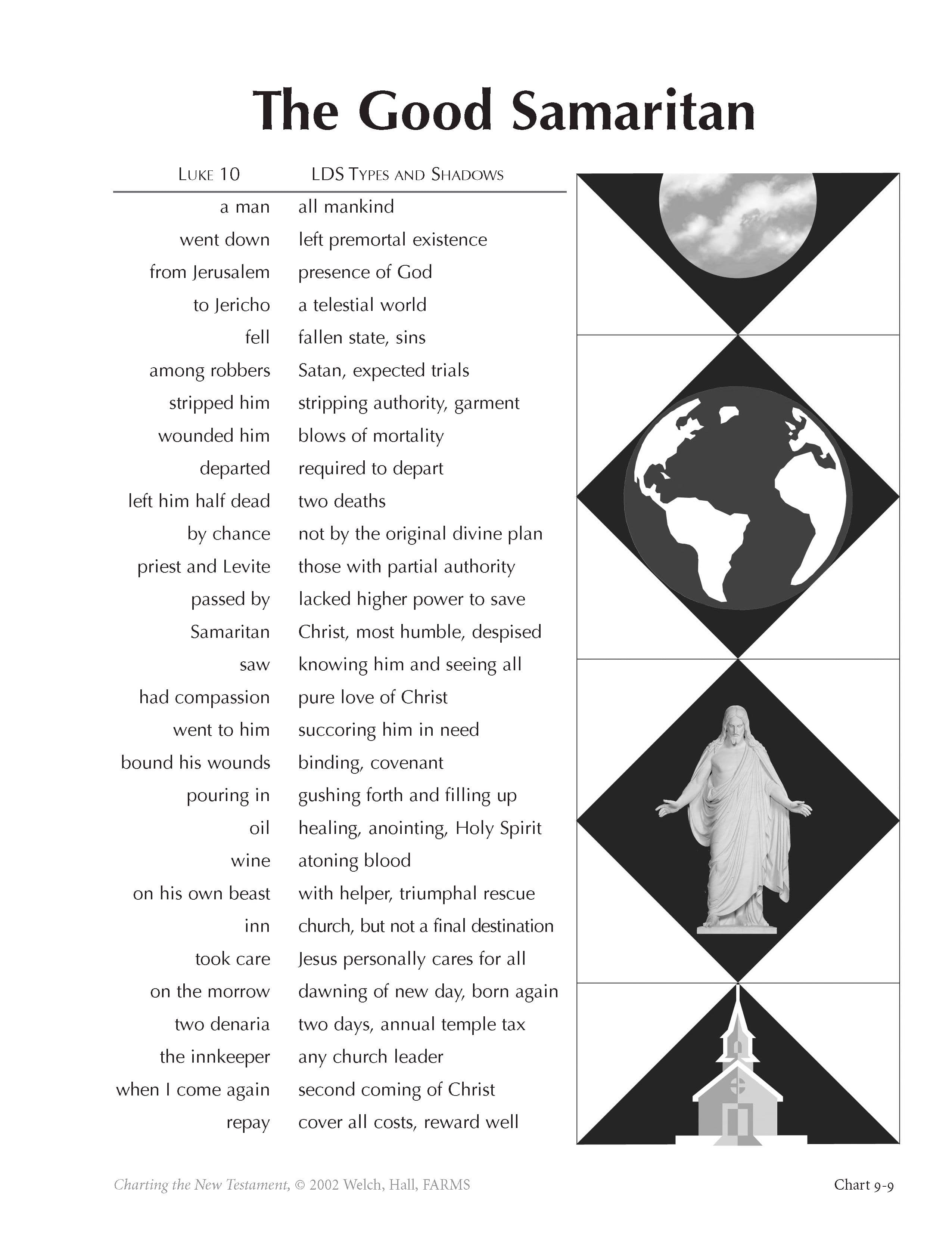 Indeed, to a listener who understands the plan of salvation, each element in this allegory can be seen as corresponding significantly with an important step in the journey of all mankind toward eternal life. Understood in this way, this parable is not only about a man who went down to Jericho but also about every person who comes down to walk upon this earth.