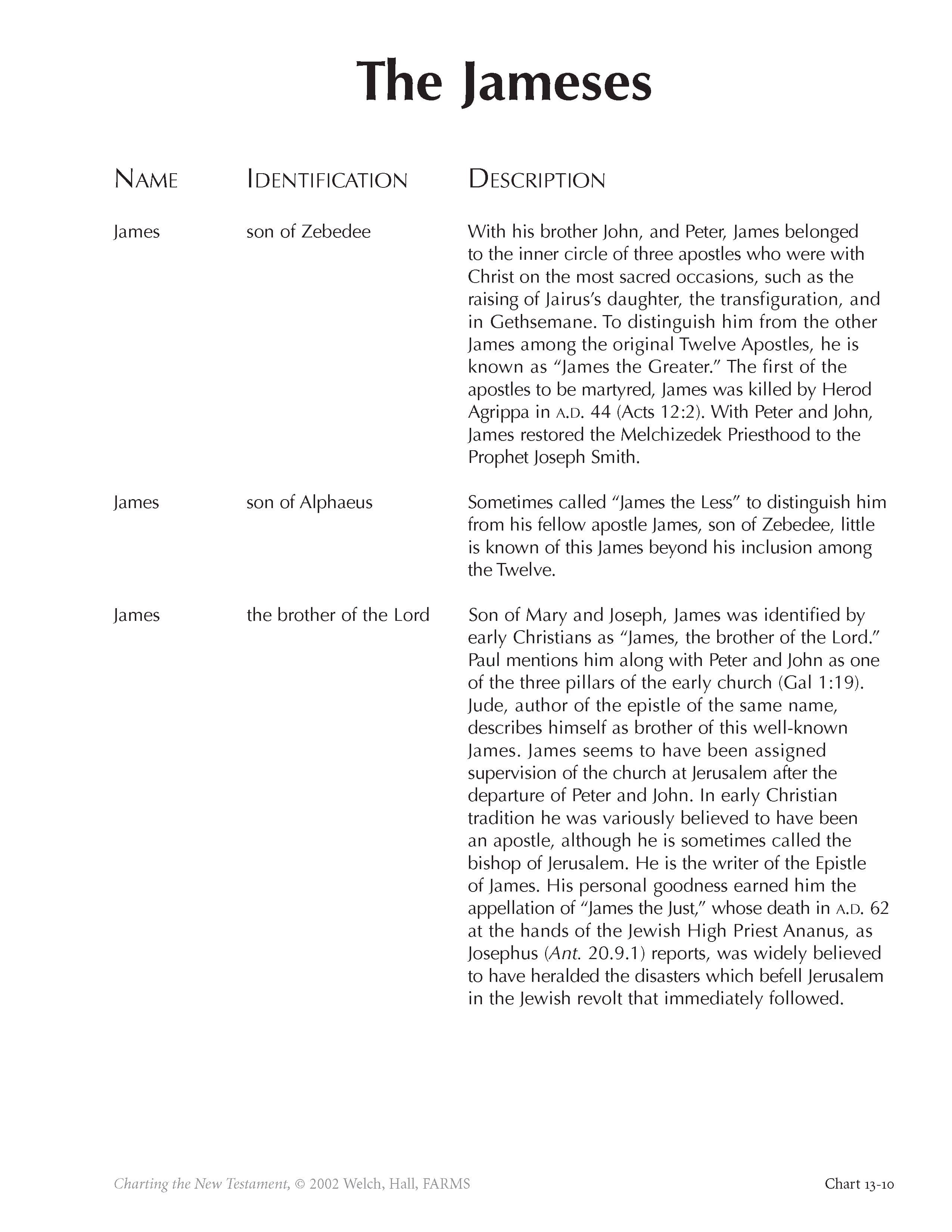 The following three charts differentiate, as much as possible, between the Marys mentioned in the New Testament, as well as the Jameses and the Johns. Among these people are some of the most important figures in early Christianity.