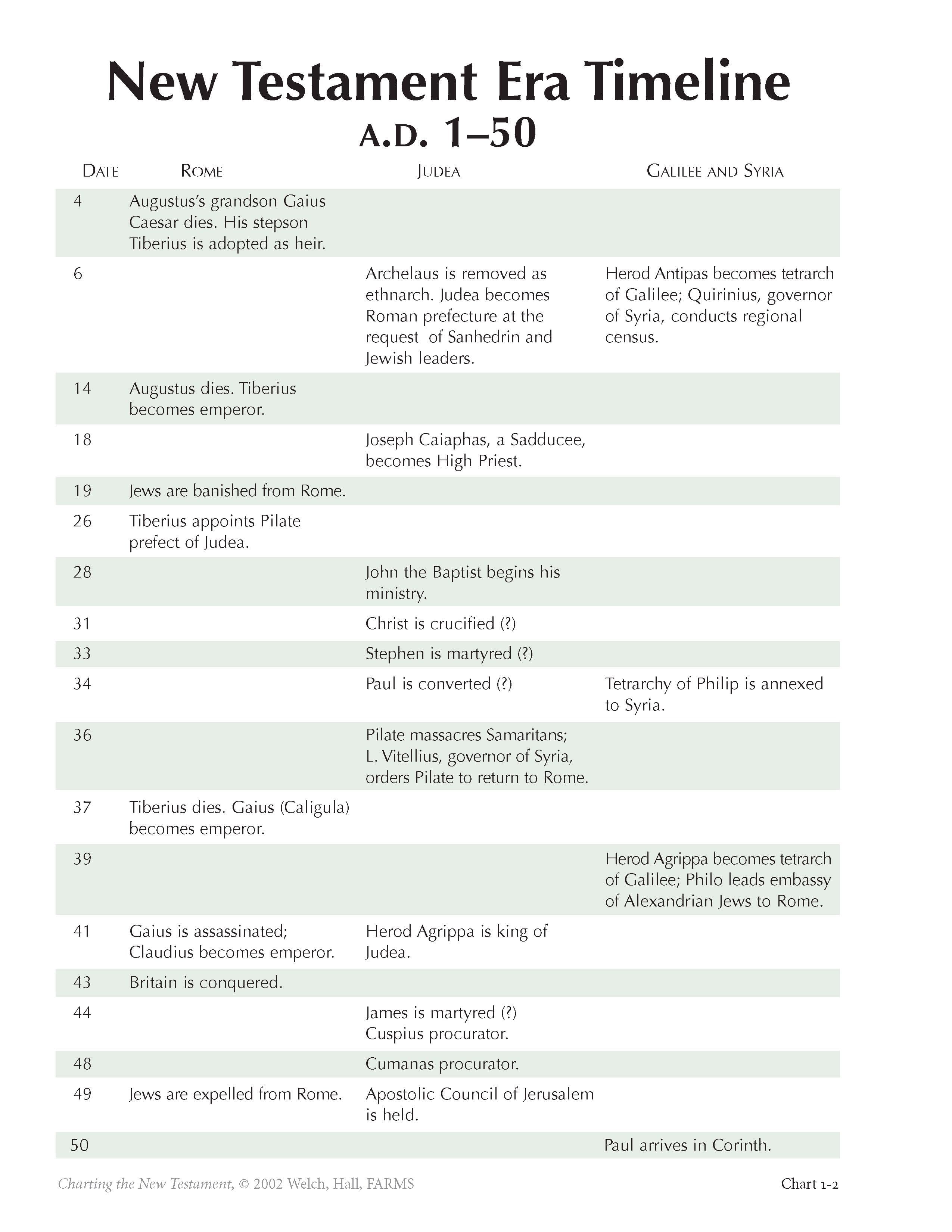 New Testament Era Timeline, A.D. 1–50