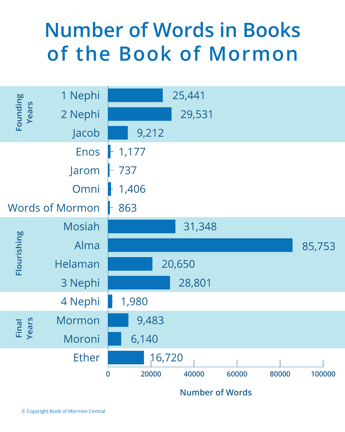 The individual books that compose the Book of Mormon vary significantly in length. The overall record concentrates on three periods: the founding of the Nephite civilization (sixth century B.C.), its flourishing (150 B.C.–A.D. 50), and its final years (fourth century A.D.).
