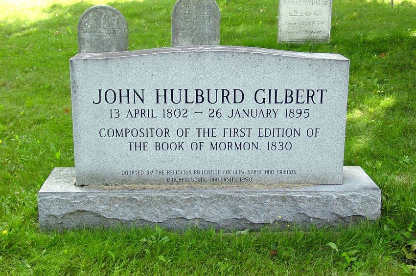 Headstone of Book of Mormon Compositor John H. Gilbert at the Palmyra Cemetery