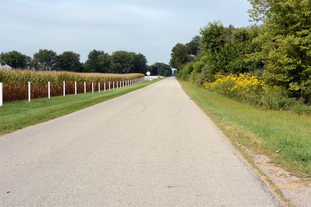 Zion's Camp followed the National Road west from the Indiana-Ohio border to 10-20 miles west of Indianapolis. A small section of the original road route has been preserved from Dunreith to Ogden, IN. This view shows part of that preserved route.