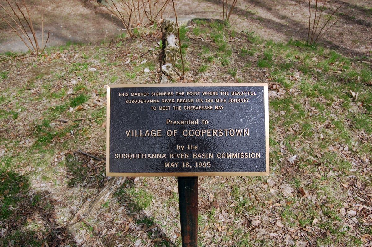 Sign at Cooperstown, NY Noting Origin of Susquehanna River