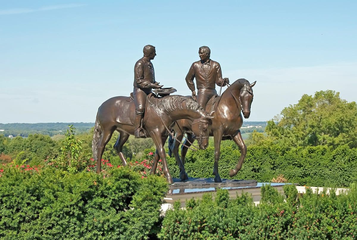 The statue "Calm As A Summer's Morning", representing the last ride of Joseph and Hyrum who went to Carthage and were killed.