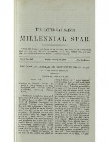 Considerable ridicule has been needlessly expended on the statement that the sitting figure in plate III, of the Book of Abraham, represents that patriarch “sitting upon Pharaoh’s throne by the politeness of the king.” It has been scoffed at as an idea entirely too silly to be met with calm argument. To imagine that the great and mighty ruler of Egypt would invite an “Arab Shiek,” at best a shepherd prince, to sit upon his throne, was altogether too absurd for a moment’s serious consideration; such extraordinary condescension would shame a Chesterfield. But we all know that it is often as easy to ridicule as it is difficult to disprove; so we will let the scoffer jest whilst we bring forward our “strong reasons” for believing this, as well as all other portions of Abraham’s divinely inspired record. Josephus writes (Book 1, chap. viii) that when Pharaoh discovered that the woman, Sarah, whom he desired to take into his household, was the wife of Abraham, he made, as an excuse for his action, that, believing her to be the Patriarch’s sister, he wished to marry her, from his desire to be related to so distinguished a personage as Abraham. This could not be irony; Pharaoh was not in a condition to be ironical with his guest. It must have been an excuse that bore upon its face the probability of truth, and one that would be accepted as genuine by the powerful visitor from Canaan. Had it been otherwise, it would have been adding insult to injury, and instead of Abraham remaining in Egypt to become a teacher to its people, we should probably learn that in anger he returned to his own land. Then, accepting Pharaoh’s own statement to be true, is it difficult to believe that he who wished to be so nearly allied to Abraham, would, in the fulness of Eastern politeness, think it any too great a condescension to ask him to sit upon his throne, whilst he explained to him and to his court the wonders of the numberless creations of God.