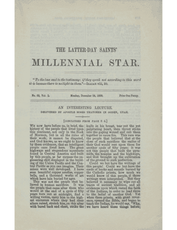 An Interesting Lecture: Delivered by Apostle Moses Thatcher in Ogden, Utah