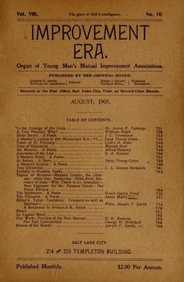 Elder Roberts dwelt especially upon the importance of the study of the Book of Mormon, and said that there is one thought which he specially desired to dwell upon, in the preview of the 1905-6 Manual, and that is, the importance of this subject—the Book of Mormon. I grant you that, like the previous Manuals dealing with that subject, the text is somewhat difficult. But the question is, are not the merits of the subject, and its importance, so great that it should stimulate the youth to master it. I confess that the Book of Mormon is but a mere incident in the great work of the Lord, in these last days, but even if it is counted but a mere incident, it is still an incident so important that the stability and the endurance of "Mormonism" is wrapped up with that incident. What would be the status of "Mormonism" if it could be proved, beyond question, that what Joseph Smith said of the coming forth of the Book of Mormon was not true? Suppose that he himself, and all associated with him, were deceived, as some urge they were; suppose that the truth of the coming forth of the Book of Mormon could be overthrown, and it could be proved to be other than the Prophet Joseph declared it to be, what would be our status as a church? I do not care how excellent our system may be; I do not care how successful we have been, if the Book of Mormon is a fraud, "Mormonism" could look no higher than human wisdom for its origin. In other words, it will stand or fall as the Book of Mormon is demonstrated true or false. Therefore, on this rests mighty consequences; and I want to express a conviction I have, that at no point are we so vulnerable to attack as upon that same Book of Mormon. Now, understand me, so far as the work of God is concerned, so far as its stability is concerned, so far as the assurance of its success in the earth is concerned, I do not believe there is a man in Israel who can be more positive than I am, in his conviction of the truth and final triumph of this work. I do not believe the Book of Mormon can be assailed and overcome. But, while all this is true, I still repeat that it marks our most vulnerable point, and that the faith of more of the youth of Zion could be overthrown by a persistent attack upon the Book of Mormon, as it appeared in its first edition, than on any other point whatsoever. I believe, moreover, that the elders of the Church of Christ are least prepared to meet the attacks of our enemy at that point, and that more unbelief rests upon attacks that have been made upon it, than upon any other cause. Hence, I say that the importance of this subject of the Book of Mormon, and establishing the faith of our young people in it, is the question, the subject of all subjects, that is of most importance to us.