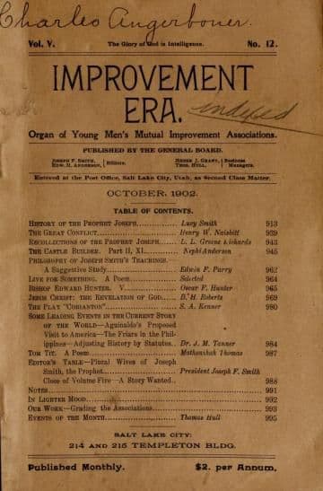 To some it may seem a peculiar if not incongruous thing that the Book of Mormon should be made the source from which the materials for a dramatic production came. Yet why? History is and has been a most fruitful field for the dramatist, and many of the plays which have fiction for the warp of the fabric employ historical events for the woof. That it is a novel manner in which to bring forth characters and incidents long since passed into the mists of obscurity, and whose discovery was finally made possible and permitted for religious rather than secular purposes, is of course; yet should it be remembered that there are different ways of accomplishing great purposes; that whenever it is necessary that information relating to man's past and present status on the earth be made general, and placed within the reach of all, the processes of distribution may involve means of which we previously were not aware, and cannot all at once comprehend. "God moves in a mysterious way." The Sphinx still raises its ungainly head above the shifting sands of the ages which have buried it to the shoulders, and pokes its battered nose into the twentieth century with as much "frozen effrontery" as when the Egyptians gave it the last blow of the chisel, and then stood away to marvel at and admire the labor of their hands. It also bears a message from the ages of the hidden past, but what it is no man knoweth, and itself gives forth no sign or sound; neither did the stately ruins, the imposing piles, the carved walls, the massive columns nor the mummified remains of the Aztecs, or whatever else the ancient Americans may be called, send along any message to succeeding ages that could be understood, until the man, the times, and the means, arrived. And then the message was published that all might understand it; and, from a segment thereof, was taken the principal incidents which form the basic principle of the play "Corianton." Those who are disposed to cavil at this, or to maintain incredulity regarding the divine authenticity of the book itself, should consider the case in all its bearings. They would then see a free and rational people suffering all manner of violent treatment, and, finally, expulsion from their homes because of their firm and unyielding faith in the tenets laid down in, and history unfolded by, the book; furthermore, sustained by the same faith and the hope of what it will bring as a reward, the bridging of the vast desert expanse which yawned between the Missouri, and the bringing together of the selvages of Eastern and Western civilization fifty years earlier than it would have been accomplished but for the pioneering work of those people, in the very midst of the otherwise unsettled, dreary waste. Such faith, accompanied by such works, tell us more plainly than words can do it that more than a belief-a knowledge-of the sanctity and truthfulness of the message, from a people who long antedated the advent of the Redeemer, inspired, upheld and directed the settlers of Utah, bringing first rude dwellings, then comfortable and finally elegant ones, constituting cities, towns and villages, in nearly all of which there is a temple of the drama, and in two of which has been produced the play which portrays some portions of the sacred writings constituting the corner stone of their religion.