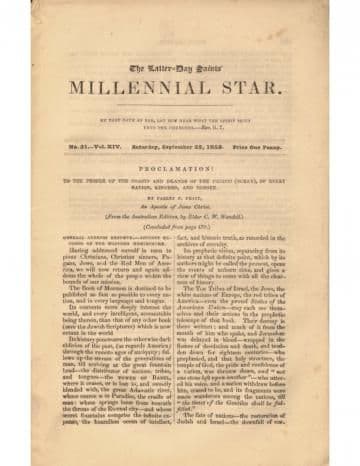 This two-part series is an apostolic manifesto enunciating basic principles of the Restoration. Pratt addresses the “red man,” identifying the Book of Mormon as a record of their people, and admonishes them to respond to the gospel and promises that they will thereby feel joy. He refers to the Book of Mormon as “that book of books, that Ensign to the nations.” The second part concludes the series.