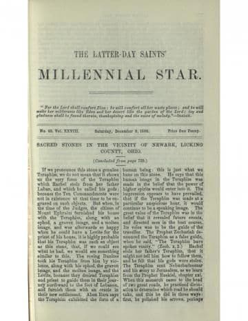 An article titled “The Two Bibles” refers to the discovery of “sacred stones of Ohio,” upon which were inscribed Hebrew phrases (MS 28/41:641-43). This article analyzes the inscriptions further, showing that the decalogue was poorly written. It suggests the tribes of Dan, Reuben, Zebulun, or Joseph could have wandered to America and deposited the stones in Ohio. The second part concludes the series.