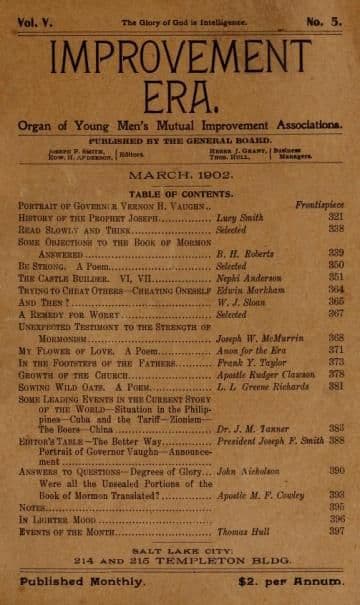 And now in conclusion, a word upon this closing paragraph of the communication here considered. Namely, that the gentleman who brings forth these old objections to the Book of Mormon "has it within his power to do us harm by publishing these statements from our books." You must pardon me, but I don't believe it. I am a strong believer in Paul's doctrine that men can do nothing against the truth, but for it. That is, the efforts of men against the truth under the providences of God will be turned ultimately to its advantage, whatever of temporary inconvenience in the interim may have to be endured. The publication of these supposed contraditions in our books will but advertise the work, lead men to investigate it whose attention, perhaps, would not otherwise be attracted to it; and investigation means being brought in contact with "Mormonism," and will afford opportunity for the spirit of the Lord to whisper to the hearts of such men and women that the work is divine, and thus the work of the ministry would be helped. Neither the gentleman in question nor any other man can harm this work, or the Book of Mormon. These old objections have been urged time and again during the last three-quarters of a century, but the Book of Mormon still holds its ground uninjured by the assaults made upon it; unharmed by objections made to it. It is being published in a constantly increasing number of nations, and is being accepted by the honest in heart, to whom the Spirit of God is bearing testimony that the book is true, and of divine origin.