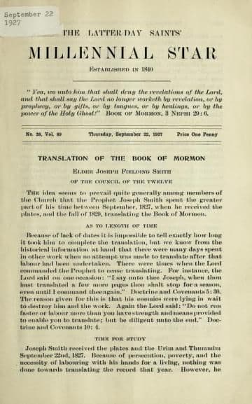 The idea seems to prevail quite generally among members of the Church that the Prophet Joseph Smith spent the greater part of his time between September, 1827, when he received the plates, and the fall of 1829, translating the Book of Mormon.