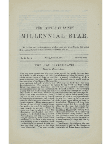The Latter Day Saints' Millennial Star 50, no. 11 (12 March 1888)