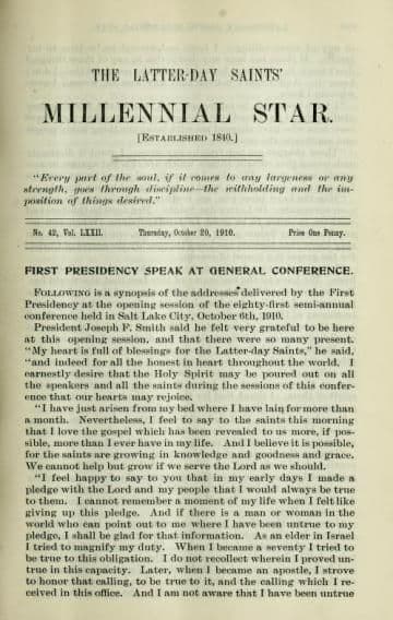 The Latter Day Saints' Millennial Star 72, no. 42 (20 October 1910)