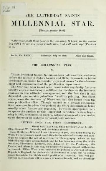 The Latter Day Saints' Millennial Star 82, no. 31 (29 July 1920)