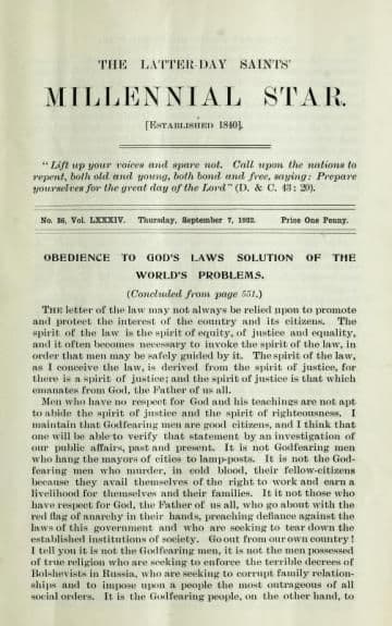 The Latter Day Saints' Millennial Star 84, no. 36 (7 September 1922)