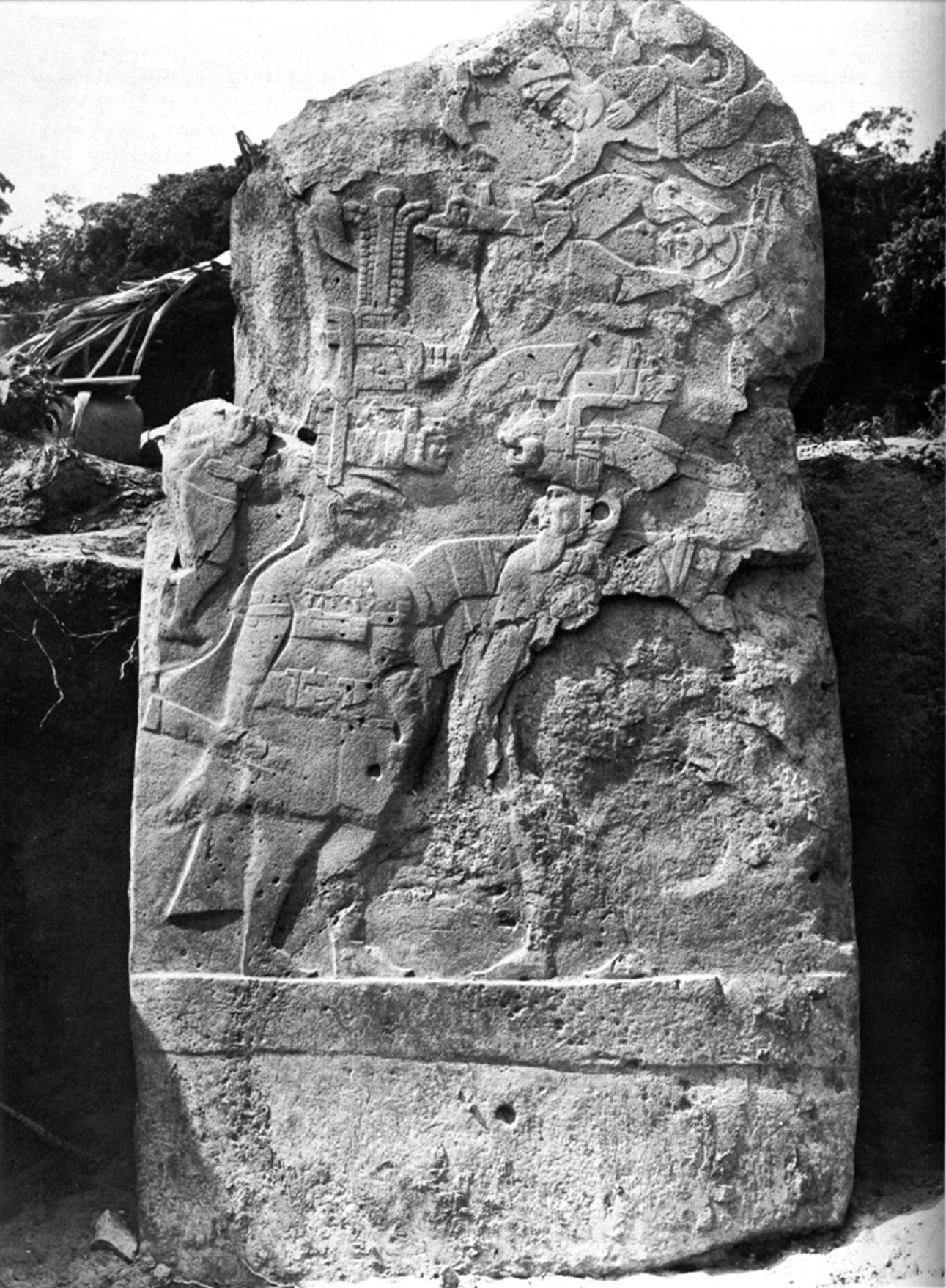 Bearded figures are found on Preclassic Maya pottery from Highland Guatemala. These include male figurines dating to the Las Charcas period which were recovered from the site of Naranjo three kilometers north of the site of Kaminaljuyu and are considered “chronological markers for the Middle formative and, diagnostics of the Charcas phase.”4 A radiocarbon sample dated the deposit where they were found to 790–420 BC.5 Examples of bearded faces, including goatee-like beards, are also shown on the horns of incense burners at Kaminaljuyu, which date to the Middle Preclassic.6 Another specimen described as “almost Biblical in character” comes from Iximche and dates to the Early Classic.7 Archaeologists working at the lowland Maya site of Naranjo (not to be confused with the Naranjo site near Kaminaljuyu) recovered a fragment of a stone sculpture showing what may have been a scepter. It shows the image of a bearded figure which may date to the Late Preclassic.8