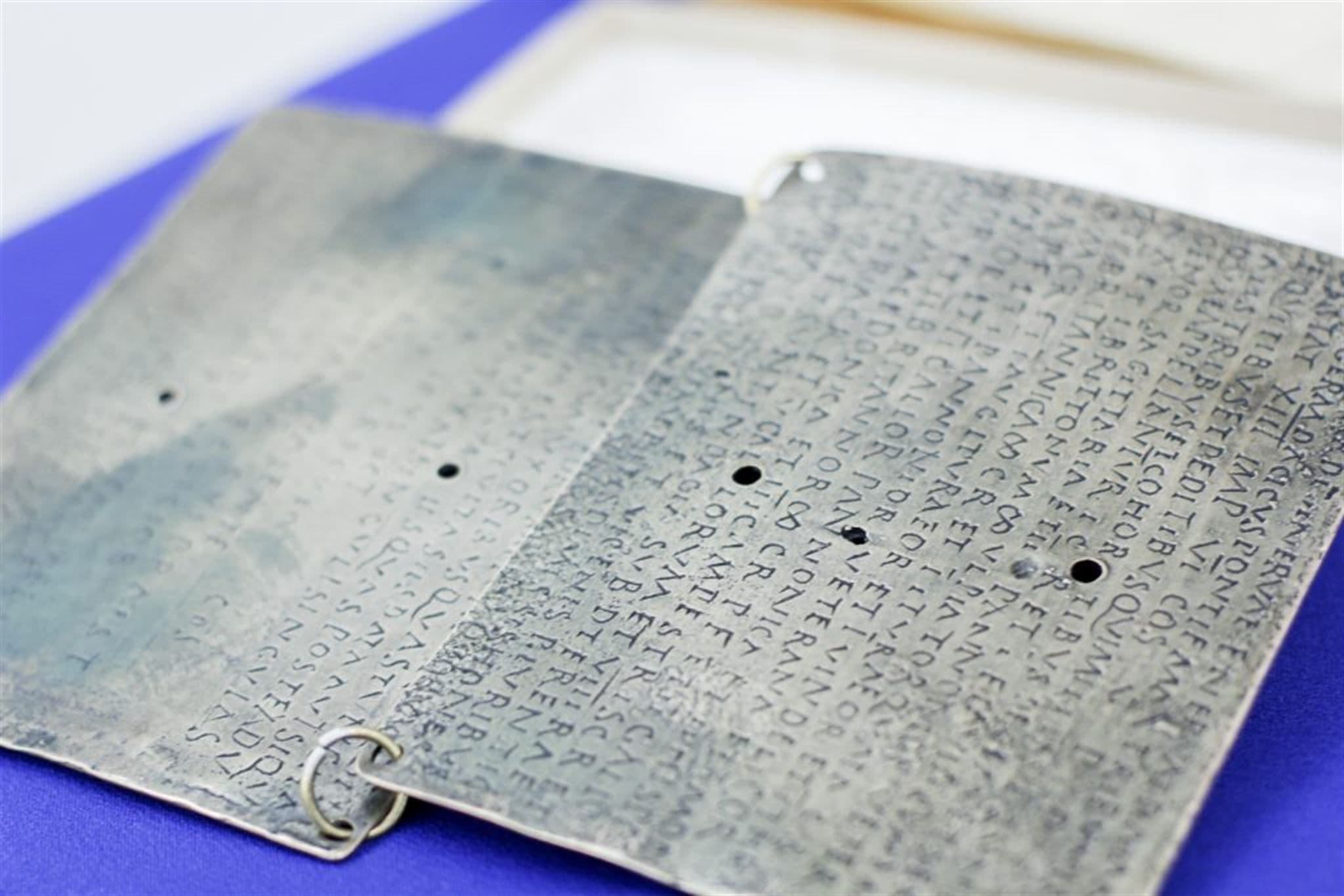 Although functionally similar, metal documents necessitated different methods of sealing. One intriguing and especially well-preserved sample comes from a set of bronze Roman plates that were donated to the library at Brigham Young University. The plates contain a military diploma which grants the rights and privileges of Roman citizenship to the recipient. Concerning the manner of their construction, Welch and Lambert write: