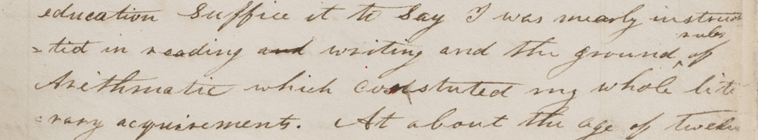In 1832 Joseph Smith wrote with his own hand that he was “deprived of the bennifit [sic] of an education suffice it to say I was mearly [sic] instructtid [sic] in reading writing and the ground rules of Arithmatic [sic] which constituted my whole literary acquirements.”8 Reports from Joseph’s family members and close acquaintances are consistent with this claim.