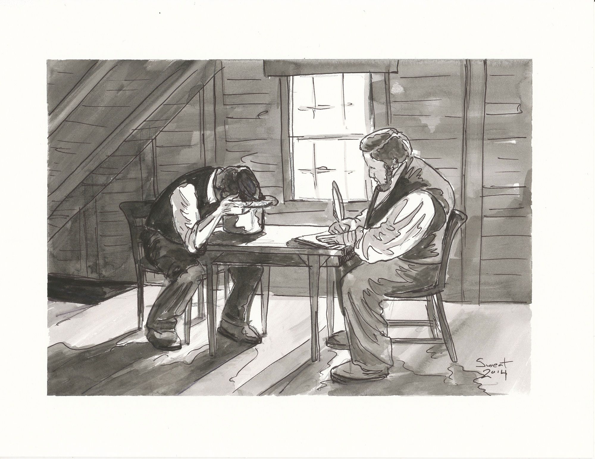 Martin struggled to exercise the requisite faith and humility, even as he went into the woods to seek for the promised vision with Joseph Smith, Oliver Cowdery, and David Whitmer. Martin withdrew from the group, and Joseph, Oliver, and David received the vision without him. Then Joseph sought out Martin, whom he found praying in the woods. The vision was then revealed to Joseph and Martin. Ecstatic at finally being granted a view of the plates, Martin cried out, “’tis enough, ’tis enough, mine eyes have beheld, mine eyes have beheld.”3