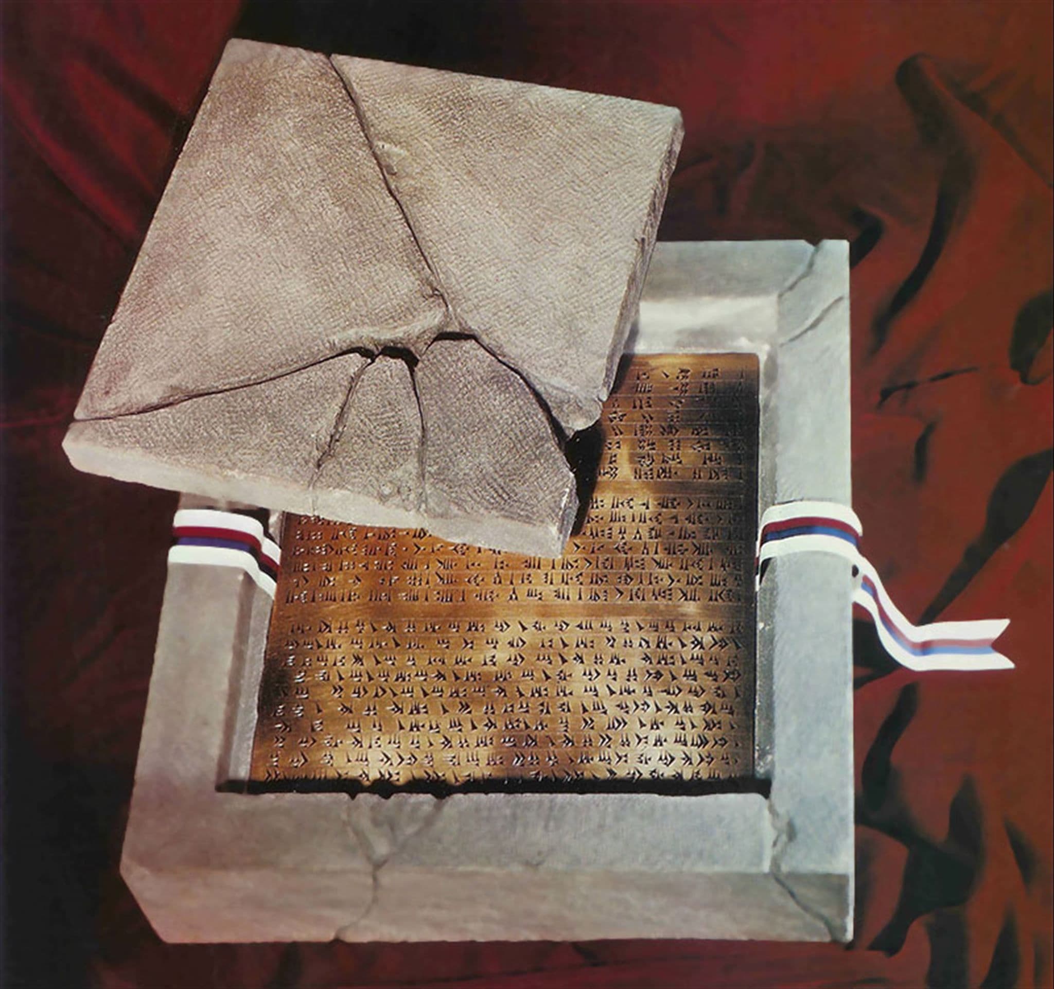 H. Curtis Wright has drawn attention to the nearly 3000-year-long practice of placing various types of engraved metal texts in box-like receptacles and then secreting them in the foundations, walls, or other inaccessible recesses of ancient temples and palaces.1 A well-known example of such a text can be seen in the inscriptions of Darius, which were written on plates made of gold and silver. The set from Hamadan (a similar set with the same inscription was found at Persepolis) was found embedded within two square hewn stones.2 Since many of these documents were stored in the foundations of temples, it is noteworthy that the original Book of Mormon records may likewise have been kept within the precincts of Nephite temples.3