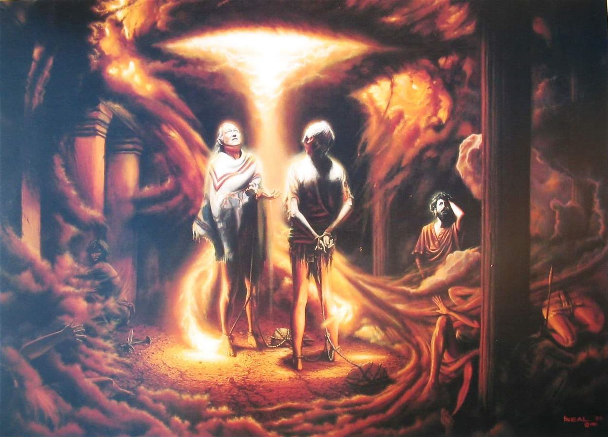 At a time of crisis, the prophets Nephi and Lehi (the sons of Helaman) preached to the Lamanites and were cast into prison (Helaman 5:21). When their captors came to kill them, they were miraculously protected and delivered by divine intervention, resulting in the conversion of their captors (Helaman 5:22–52).