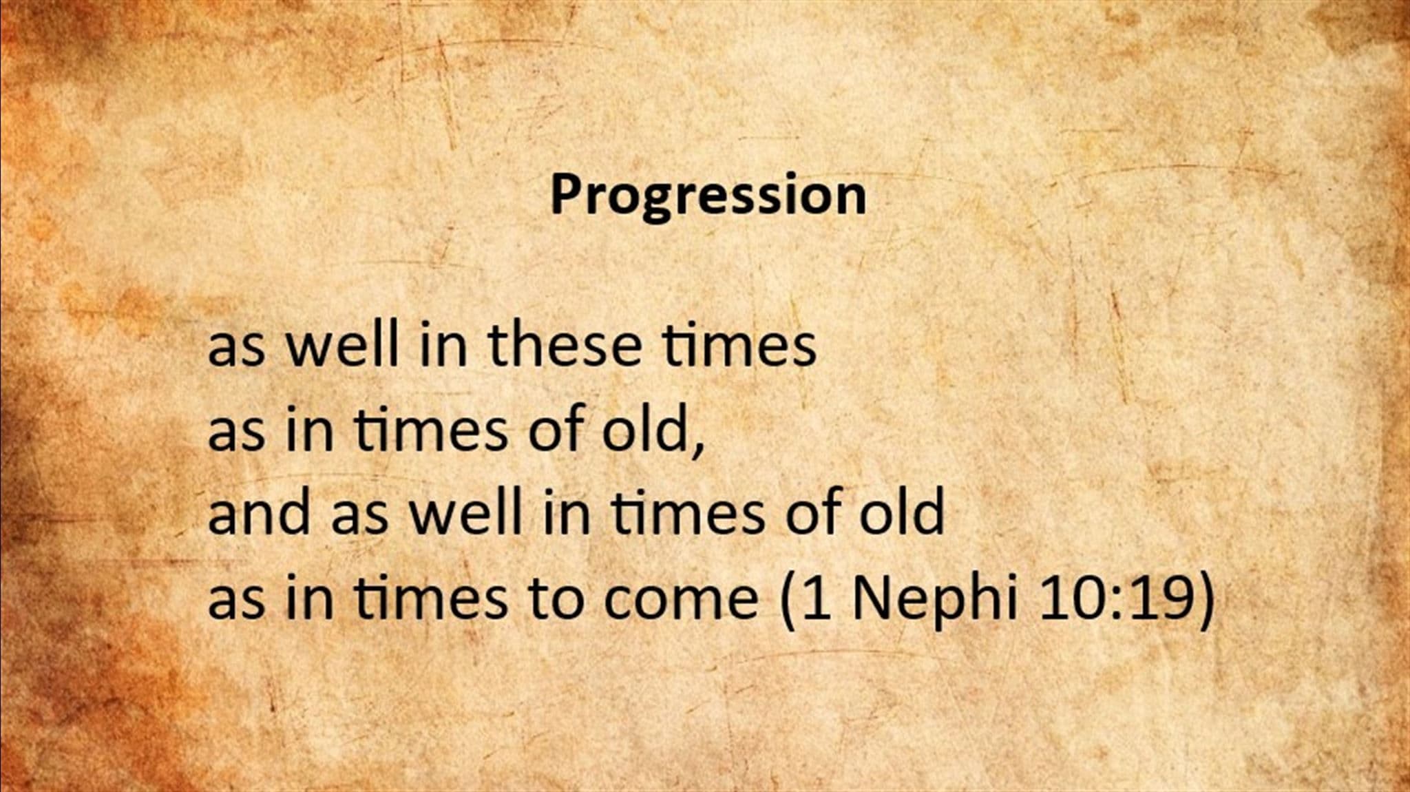The literary parallelism known as “progression” can be found in the Bible and also in the Book of Mormon.One type of parallelism sometimes referred to as “progression” involves parallel phrases that build up to a climactic conclusion.1 Here is a simple example from Isaiah 3:13: