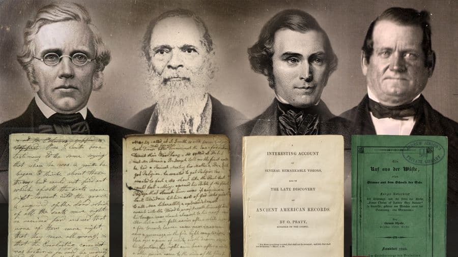 Two years after Pratt published A[n] Interesting Account another apostle, Orson Hyde, published a missionary tract in Germany titled Ein Ruf aus der Wüste, eine Stimme aus dem Schoose der Erde (A Cry out of the Wilderness, A Voice from the Bowels of the Earth). Using Pratt’s A[n] Interesting Account as his “principle source,”7 Hyde touched on the same points as Pratt in his retelling of the First Vision. One detail included by Hyde but not by Pratt, however, is that as Joseph prayed in the grove “the adversary” filled his “mind with doubts and . . . . all manner of inappropriate images [that] prevent[ed] him from obtaining the object of his endeavors.”8 Although Hyde’s overseas pamphlet did not become as popular or influential as Pratt’s, it is significant as “the first account [of the First Vision] published in a language other than English.”9
