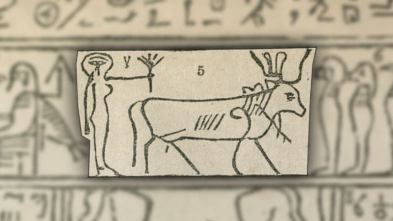 Figure 5 in Facsimile 2 of the Book of Abraham, a figure of an upside-down cow, is identified by Joseph Smith with this elaborate explanation: