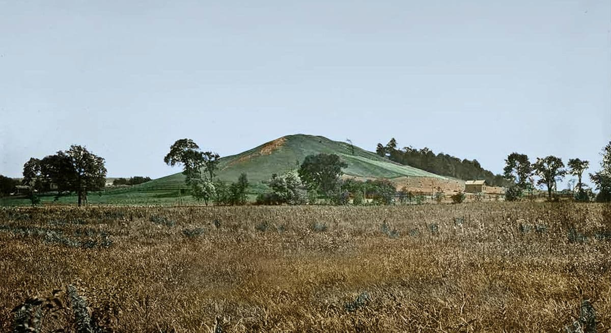 The Hill Cumorah with Angel Moroni monument, via history.lds.org.